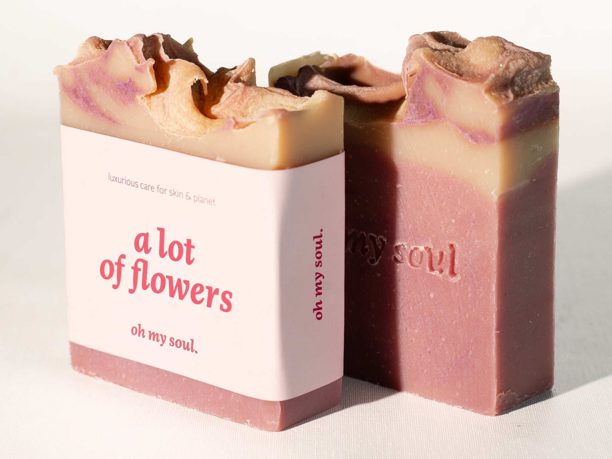 Roze klei en mica maken haar romig, zacht en net zo levendig als haar geur.